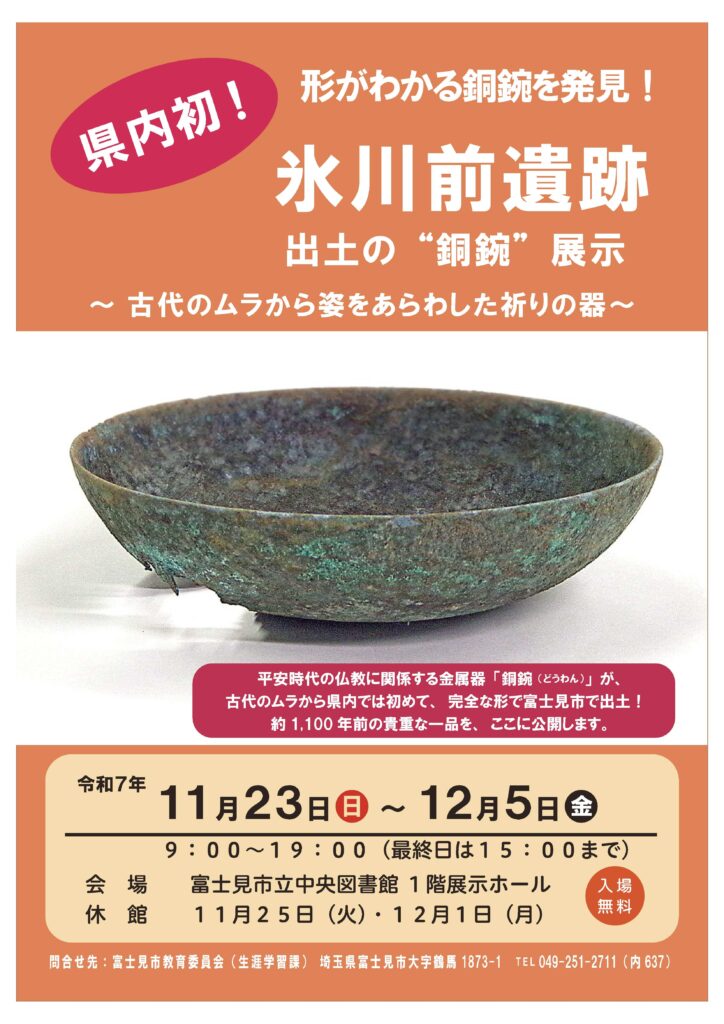 約1,100年前の貴重な一品が、現在、中央図書館にて展示・公開されています✨いい富士見の日である11月23日(日・祝)から展示を開始したのですが、この日に行われたPR大使トークライブでもこの銅鋺が話題になりました✨みなさまもこの機会にぜひご覧ください‼